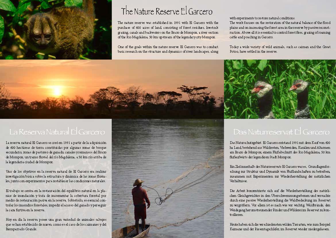 Das Naturschutzgebiet El Garcero entstand 1991 mit dem Kauf von 600 ha Land, bestehend aus Waldresten, Viehweiden, Kanälen und Altarmen am Brazo de Mompox, einem Flußabschnitt des Rio Magdalena, 50 km flußaufwärts der legendären Stadt Mompox.